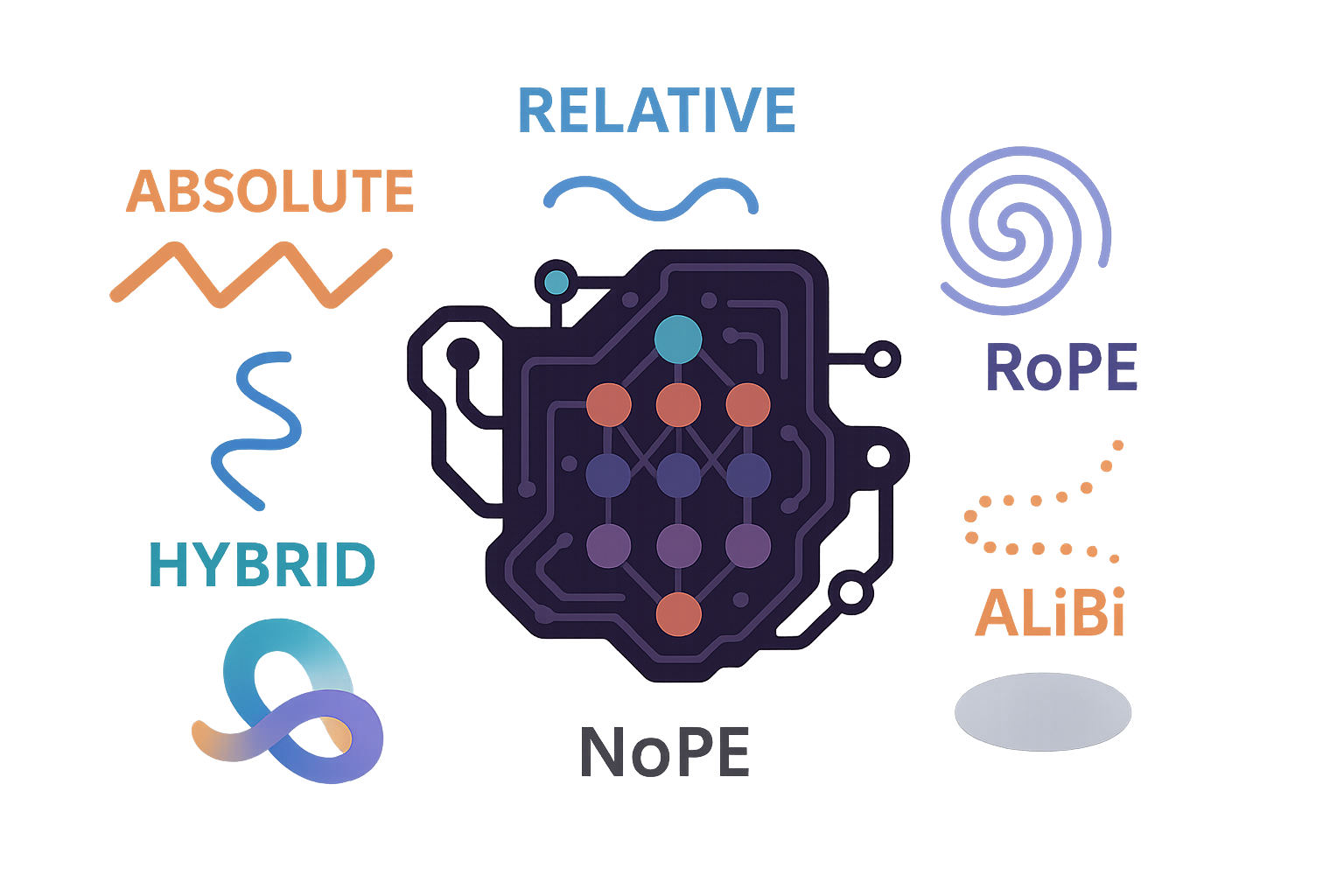 Positional Embedding은 Transformer의 핵심이자 지난 7년간 끊임없이 실험과 진화를 거듭해왔습니다. Absolute에서 Relative, RoPE와 ALiBi, 그리고 이제는 NoPE와 하이브리드까지.