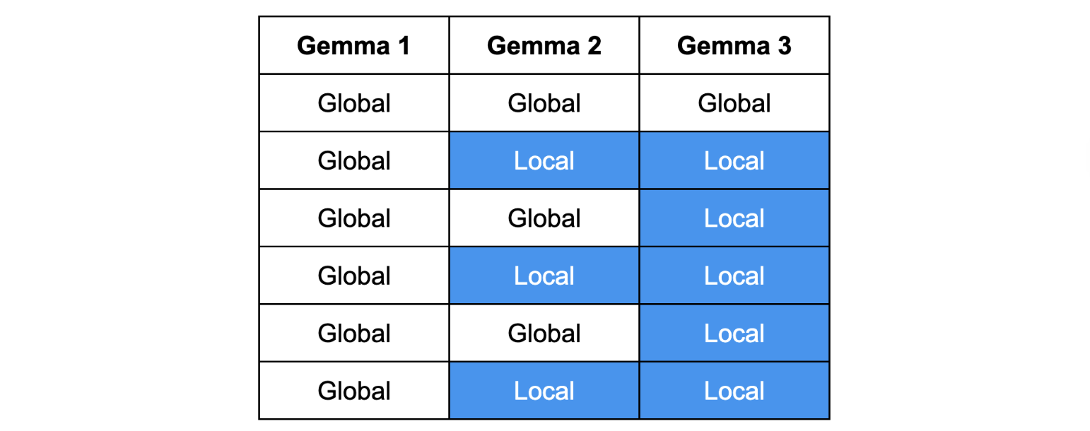 Gemma 모델은 이렇게 특성이 다른 두 종류의 레이어를 혼합하여 짧은 문맥의 정밀함과 긴 문맥의 일반화 성능을 모두 잡을 수 있었습니다.