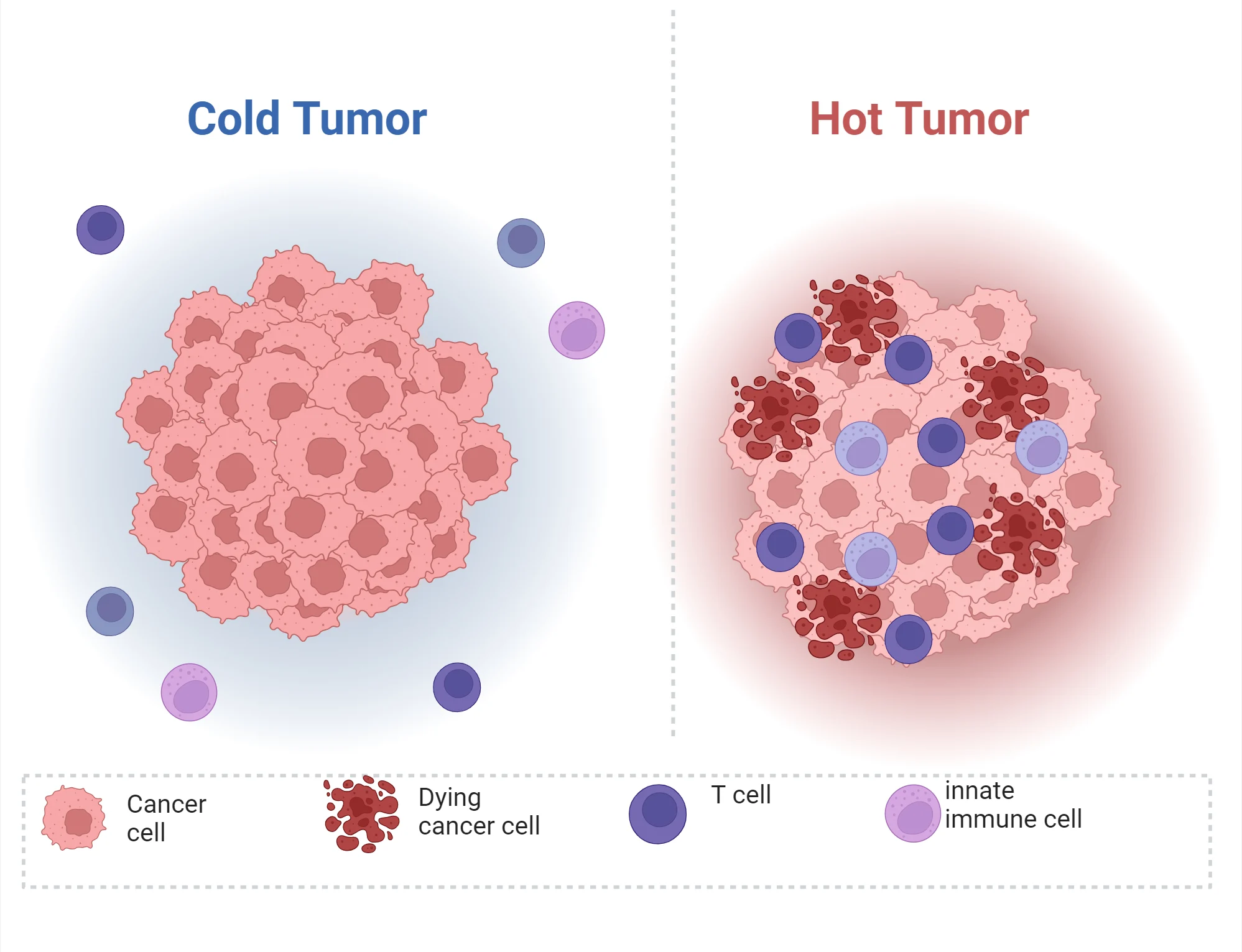 C2S-Scale이 특히 주목받은 이유는, 새로운 암 치료 단서를 직접 제시했다는 점입니다. 우리 몸의 면역계는 원래 암세포를 감지하고 제거하는 방어 체계를 가지고 있지만, 일부 암은 면역계가 이를 ‘적’으로 인식하지 못해 조용히 성장합니다. 이렇게 면역 반응이 거의 일어나지 않는 암을 ‘Cold Tumor’, 반대로 면역세포가 활발히 반응하는 경우를 ‘Hot Tumor’라고 부릅니다. |