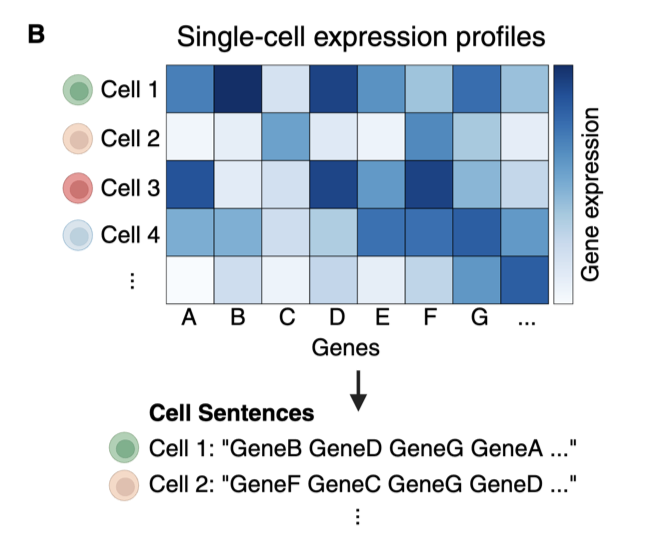 하지만 LLM의 등장은 이 흐름을 바꿔놓았습니다. 이제 AI는 인간의 언어를 넘어 생명체의 언어를 이해하려는 단계로 나아가고 있죠. 이 변화의 흐름 속에서 등장한 모델이 바로 Cell2Sentence(C2S)입니다. |