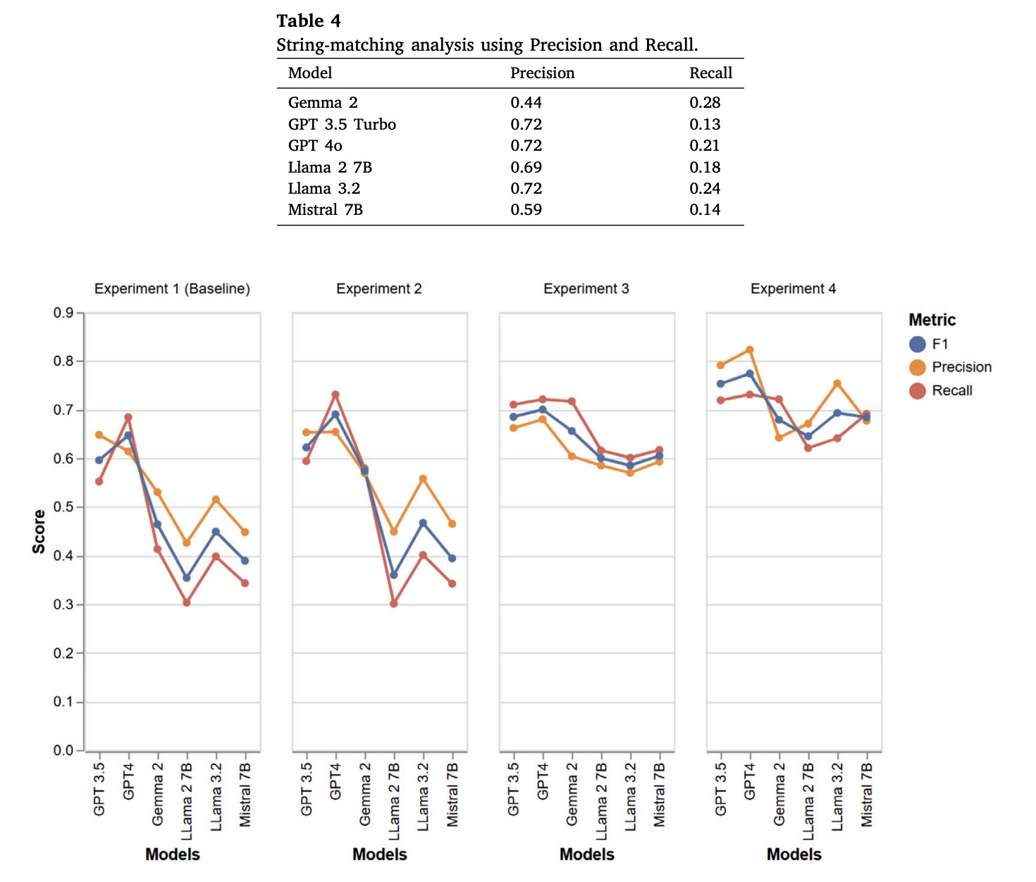 연구진은 프로파간다 탐지 연구에 주로 사용되는 SemEval 2020 Task 11 데이터셋을 활용하여 실험을 진행했습니다. 해당 데이터셋은 뉴스 기사를 토대로 인간이 직접 특정 부분을 프로파간다라고 판단하여 레이블링한 데이터입니다. 실험 결과, 상업 모델(Proprietary Model)인 GPT-4o와 GPT-3.5 Turbo는 정밀도에서는 0.72 수준으로 높은 값을 기록했지만, 재현율은 각각 0.21과 0.13에 그쳤습니다. 그밖에도 대부분의 모델에서 정밀도(Precision)는 비교적 높지만 재현율(Recall)은 현저히 낮은 경향을 보였습니다. 이는 모델이 프로파간다라고 판단한 경우에는 비교적 정확하지만, 실제 존재하는 프로파간다 사례 상당수를 놓치고 있다는 것을 의미합니다. |