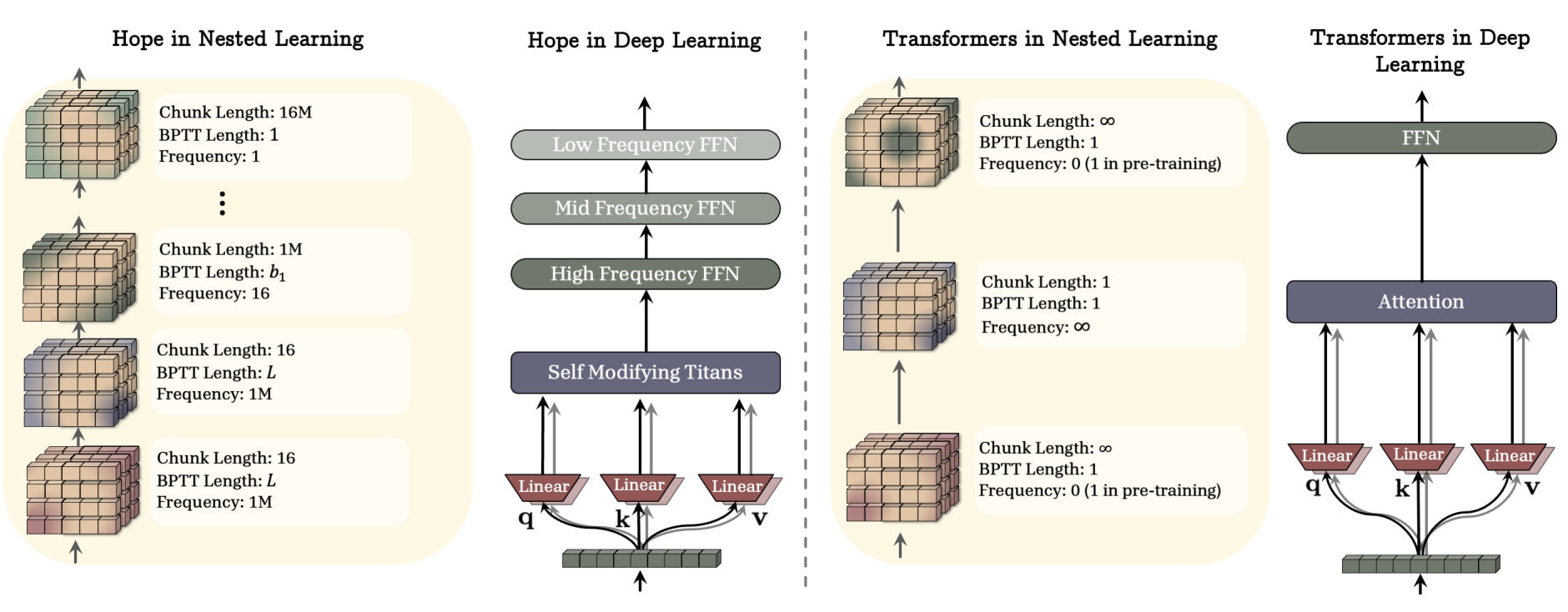 이 문제를 해결하기 위해 작년 11월, Google Research는 <Nested Learning: The Illusion of Deep Learning Architecture>라는 논문을 통해 Nested Learning이라는 패러다임을 제시했습니다.
